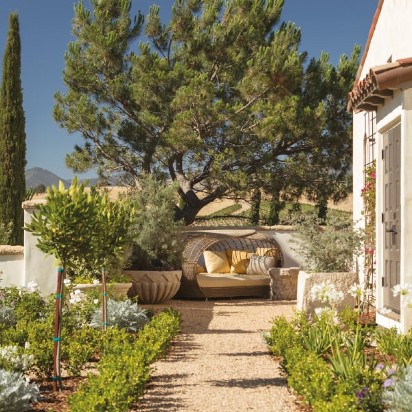 The Sanger Vineyard Estate is set amidst extensive vineyards and olive groves, with a cypress-lined driveway welcoming guests to this Mediterranean-style retreat. The couple actively contributed to the design, and the result is a home that not only reflects their vision but also enhances the natural beauty