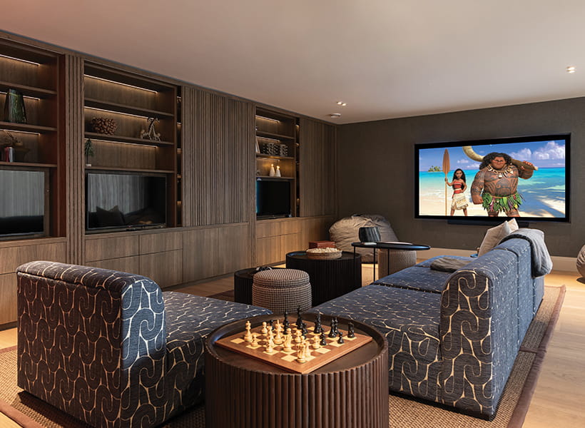 The games room was developed as a lively, flexible space for children and teens, combining modular seating, hidden storage and interactive features.