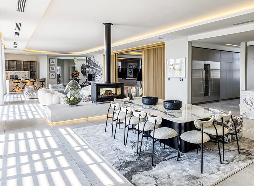 Munyaka Penthouse in Waterfall City sets a new benchmark with its crystalline lagoon and refined interiors by LYT Architecture. The six-bedroom penthouse combines elegance with functionality, featuring Gaggenau appliances, bespoke furnishings, and a rooftop terrace with panoramic city views.