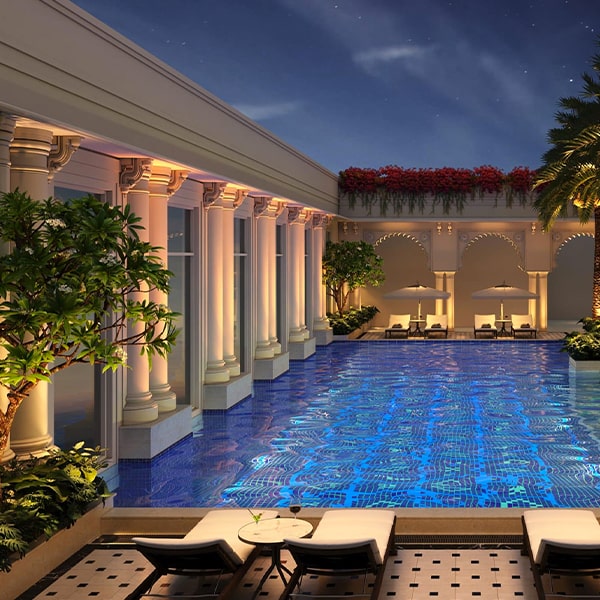 Positioned near Jaipur International Airport, the Gateway Hotel property reflects classical architecture with Rajasthani details and colonial influences. The hotel balances heritage and modern comfort through lantern lit courtyards, elegant interiors, and event ready spaces. Gold accents nod to its jeweler family ownership, creating a setting that feels both rooted and refined.