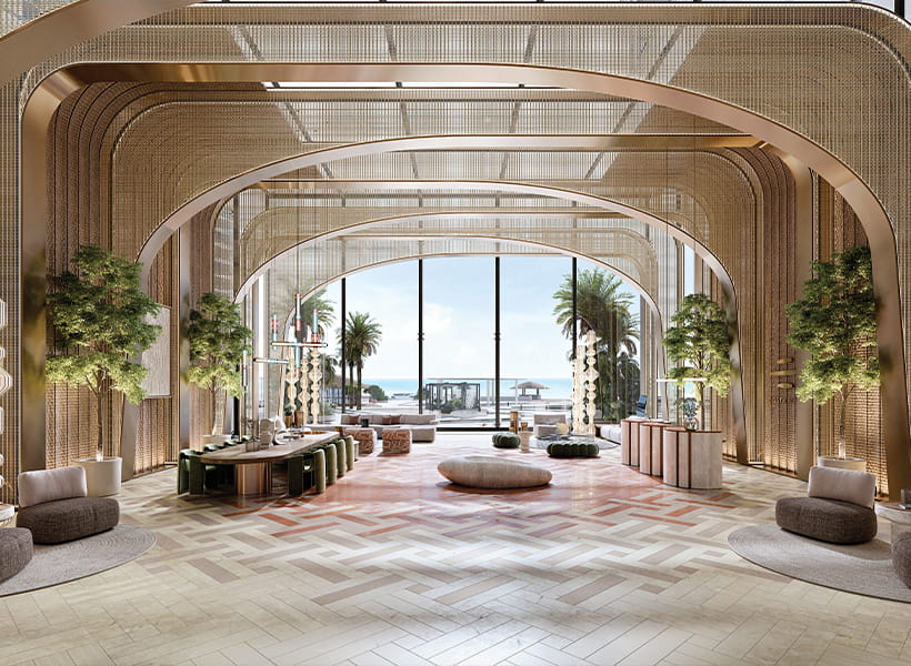 Costa Mare for Ellington is a captivating new landmark on Al Marjan Island, offering a seamless blend of natural inspiration, refined architecture, and modern living. Located along a pristine sandy beach, the development boasts panoramic views of the sea, Ras Al Khaimah’s skyline, and the highly anticipated Wynn Casino. The design reflects the natural topography of Ras Al Khaimah through biomorphic forms and materiality, offering strong visual connections to the skyline and a seamless blend of indoor and outdoor living. A defining feature is the carved horizon, a dramatic central cut within the massing that transforms into a vibrant amenity hub with greenery, recreational areas, and communal spaces.
